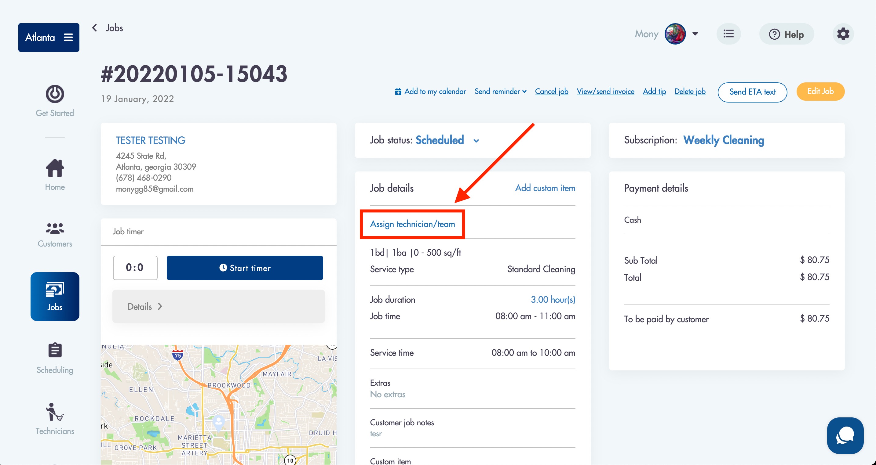 - In the Details section of the Job Details screen you can find all of the service info such as: extras, time of arrival, maid assignment. Updating the assigned maid through the Job Details screen will also update it on the Scheduling function.