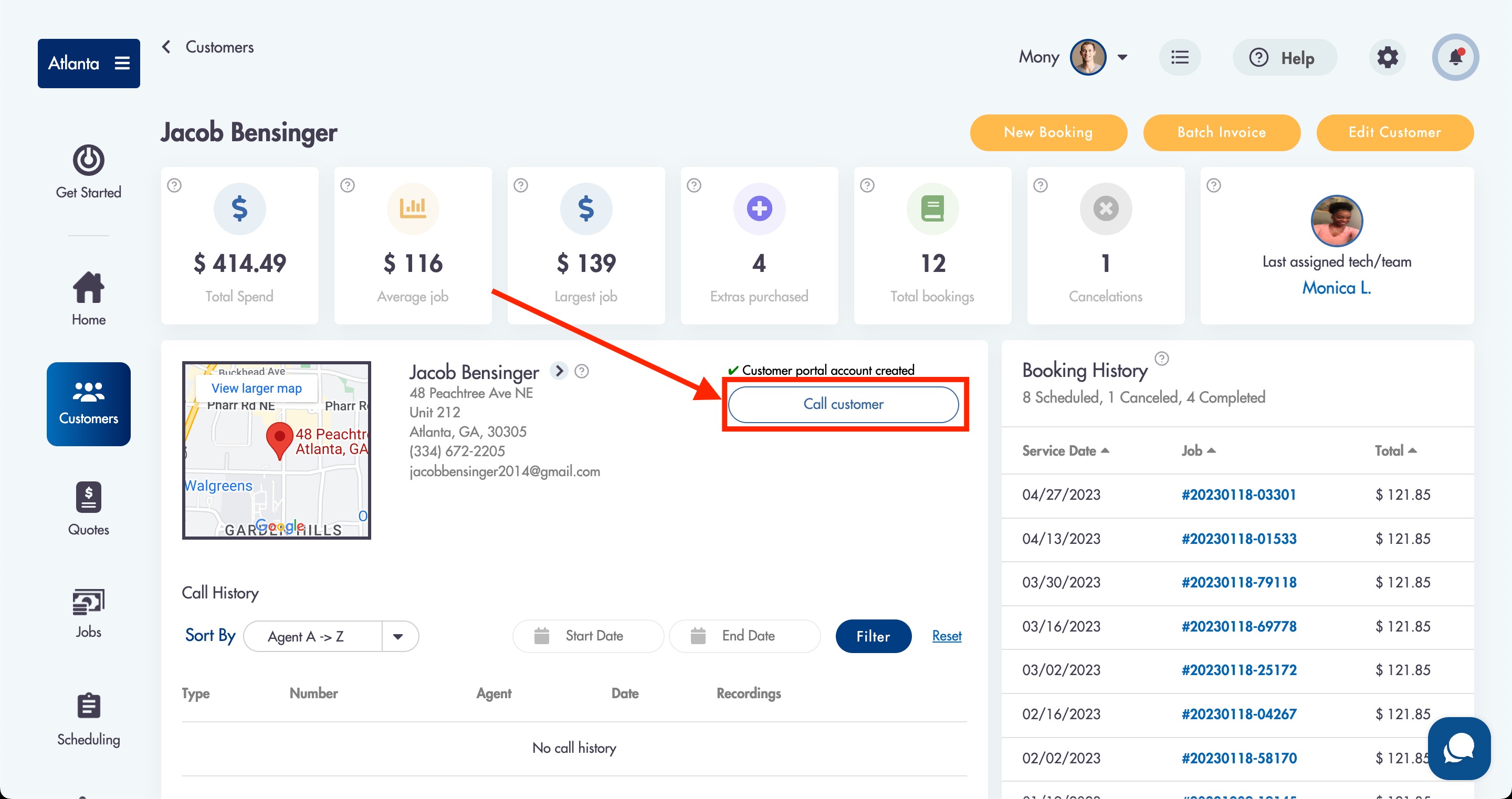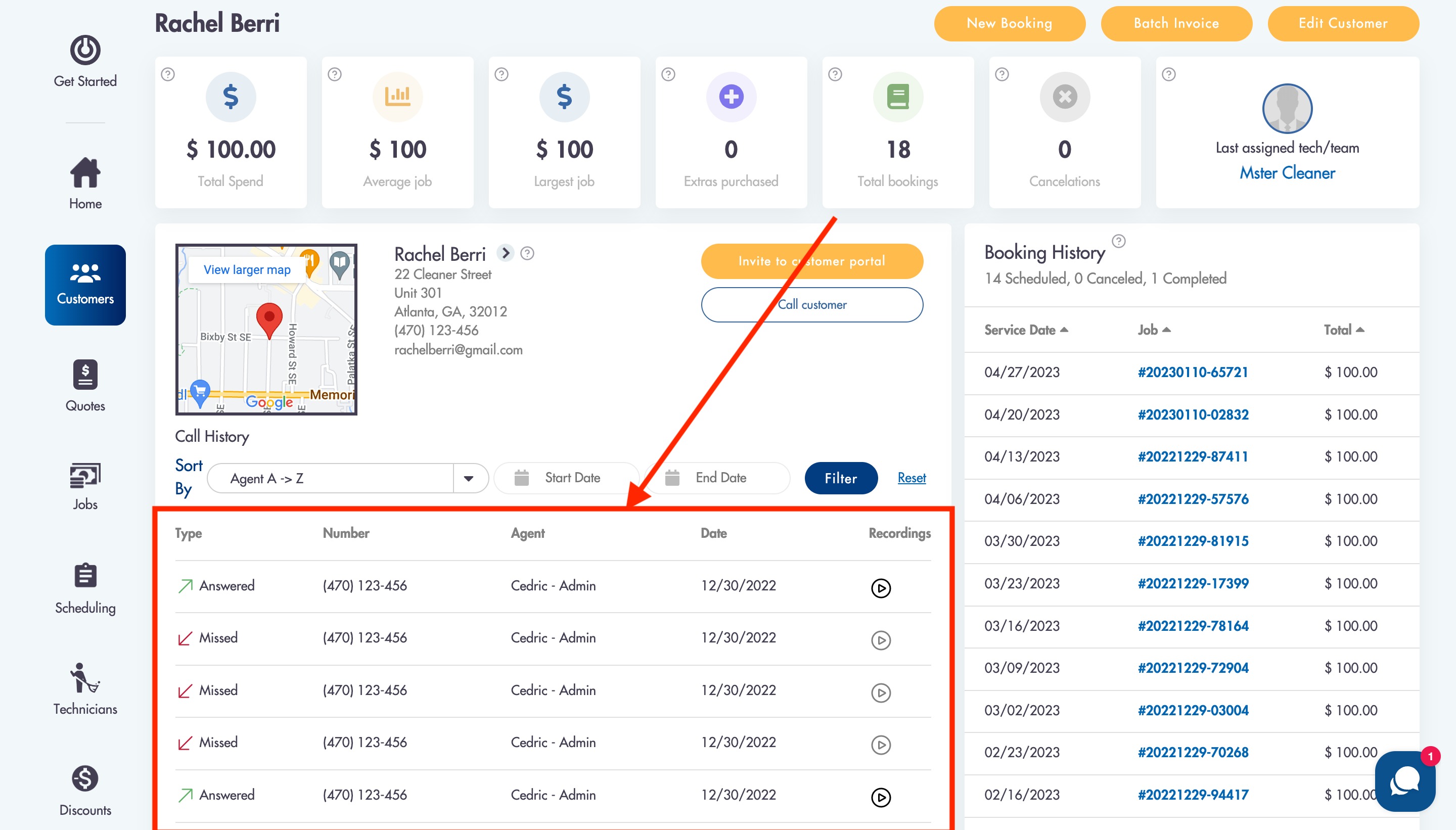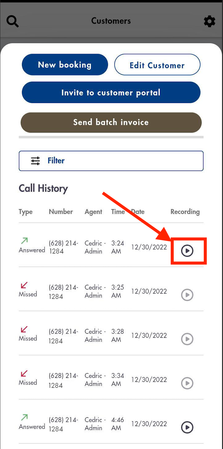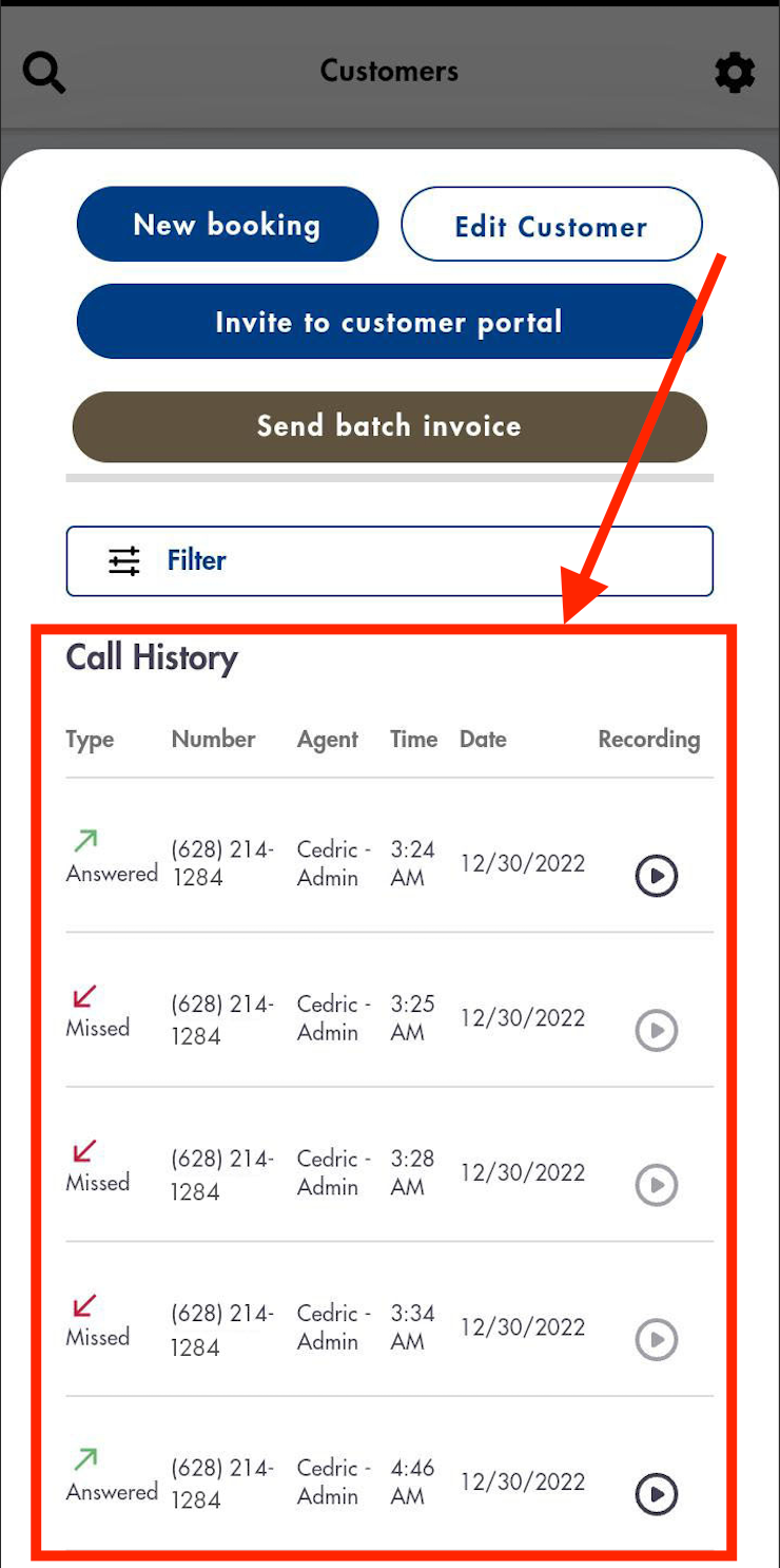 All registered calls will be tracked and recorded under the customer's profile in the Call History section.