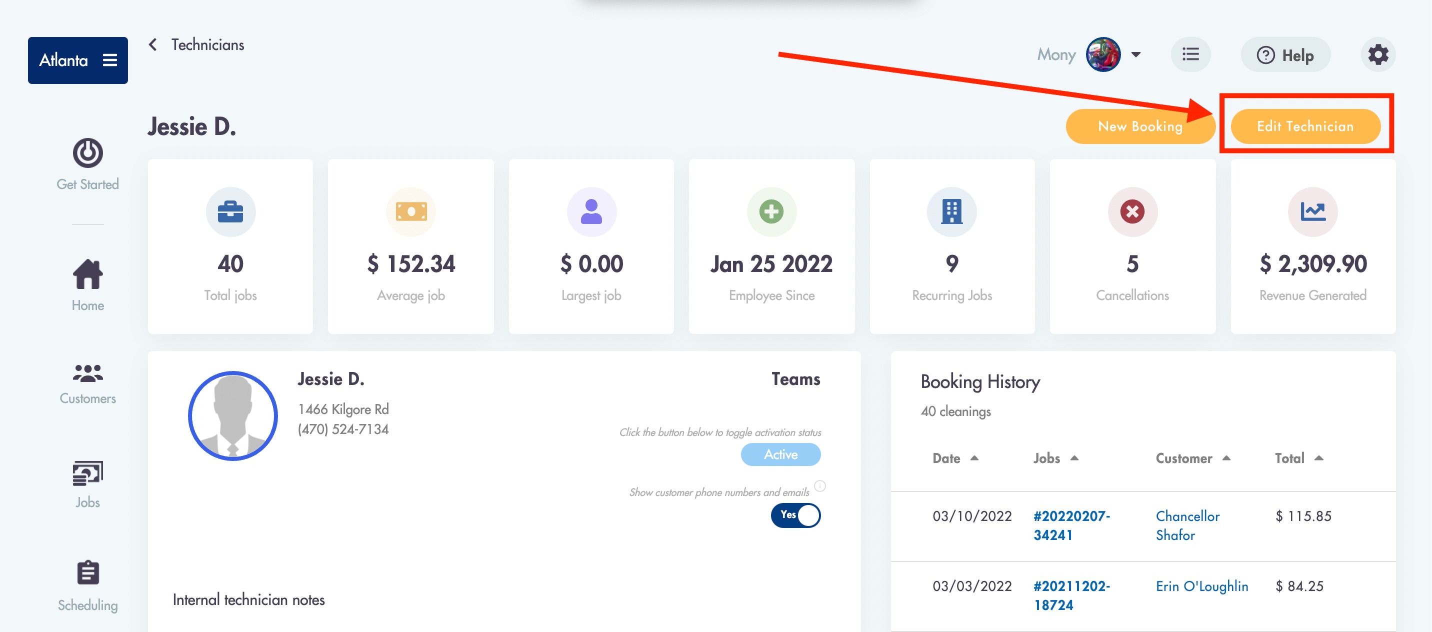 - Click on 'Edit Technician' in the top right corner
